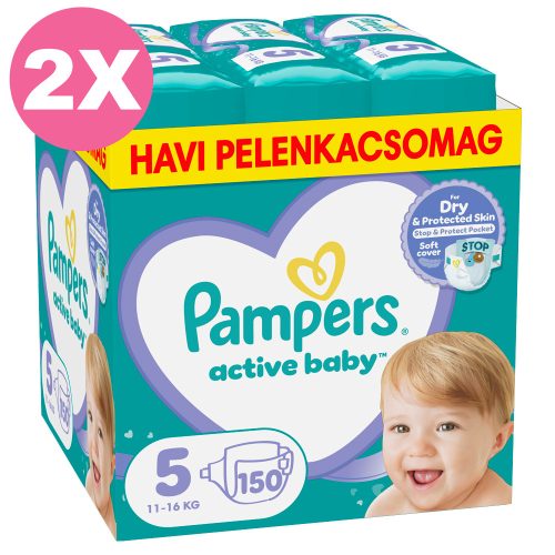 Pampers Active Baby 5 pelenka, 11-16 kg 2x150 db - 2 HAVI pelenkacsomag