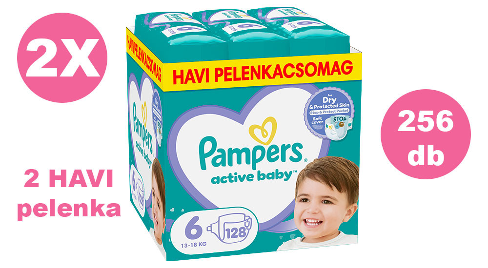 Pampers Active Baby 6 pelenka, 13-18 kg 2x128 db - 2 HAVI pelenkacsomag