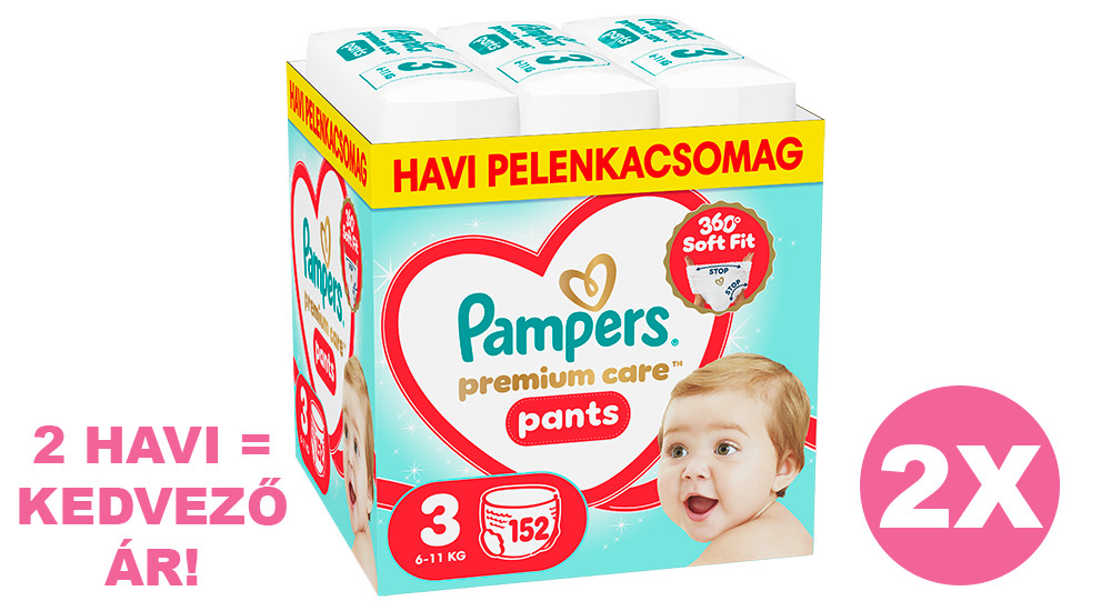 Pampers Premium Care Pants 3 bugyipelenka, 6-11kg, 2x152 db - 2 HAVI pelenkacsomag